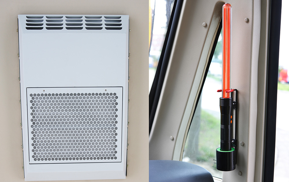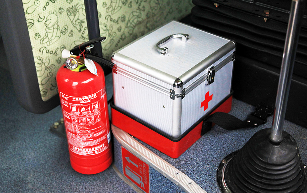 車內(nèi)配備急救箱,在突發(fā)事故時(shí),保證受傷人員能夠得到及時(shí)的救治,車內(nèi)配備熒光指揮棒,便于看管人員在學(xué)生上下車時(shí)有效維持周邊交通環(huán)境