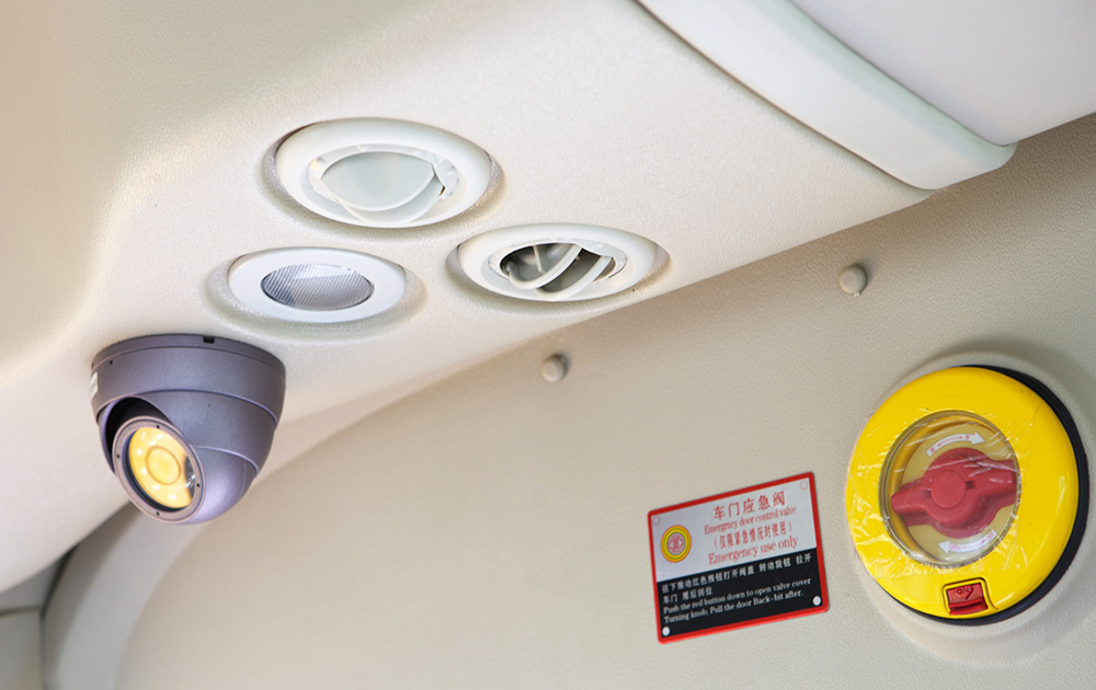 側(cè)窗一鍵爆破系統(tǒng),遇到事故發(fā)生,按下按鈕可對(duì)側(cè)窗進(jìn)行一鍵爆破,便于快速逃生。