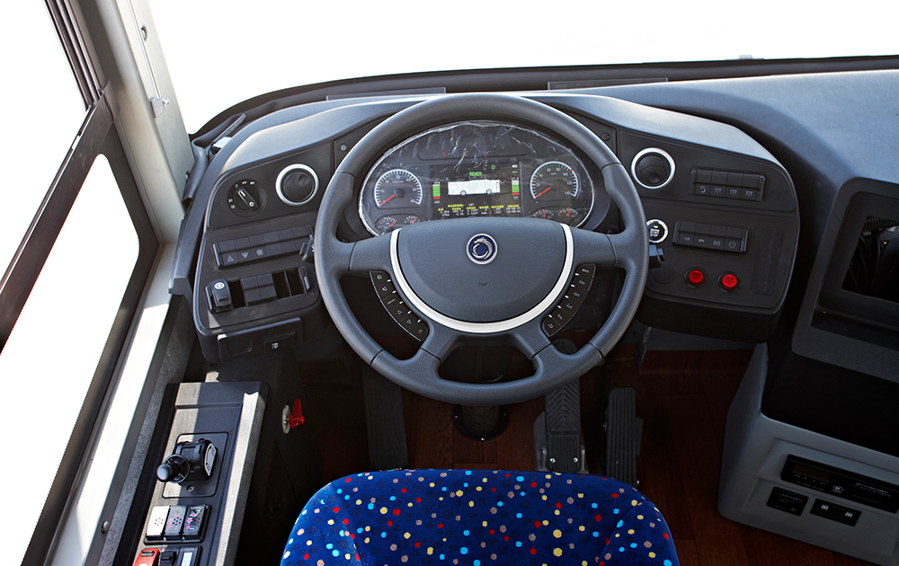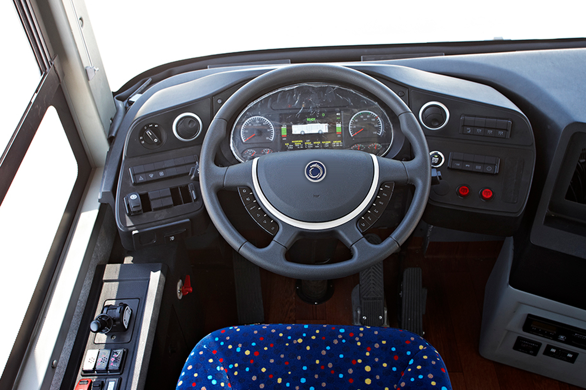一體化儀表臺、全液晶儀表,駕駛區(qū)安裝氣囊減震座椅、小型智能嵌入式投幣機(jī),一體式司機(jī)包圍結(jié)構(gòu),提高駕乘舒適性和安全性.