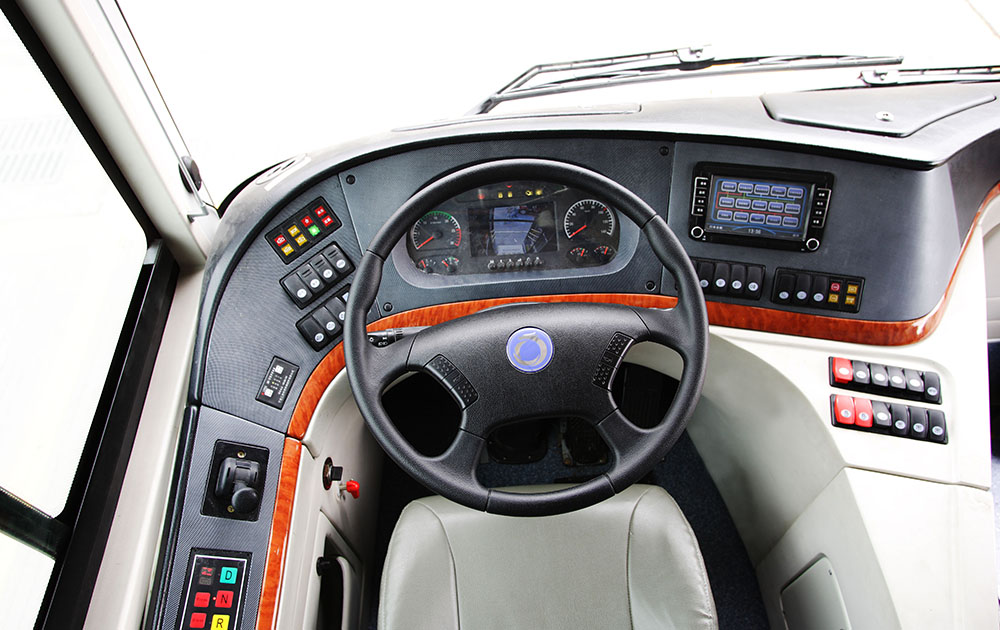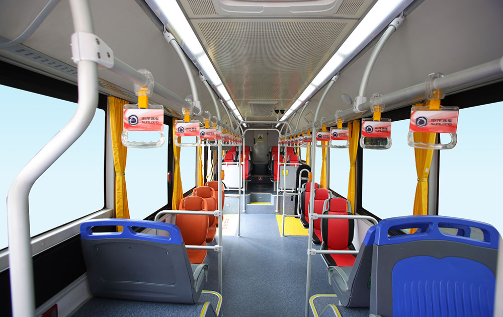 整車低地板設(shè)計(jì),配備ECAS懸架系統(tǒng),駕駛區(qū)安裝氣囊減震座椅、全液晶儀表,小型智能嵌入式投幣機(jī),一體式司機(jī)包圍結(jié)構(gòu),提高駕乘舒適性和安全性;